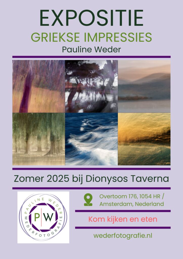We gaan al sinds onze huwelijksreis in 1989 regelmatig naar Griekenland en al net zo lang komen we bij Dionysos Taverna eten. Ik was dan ook heel blij dat ik deze expositie bij Nikos mocht verzorgen.