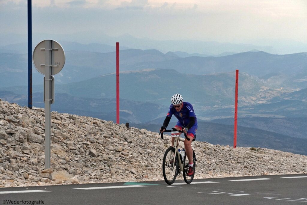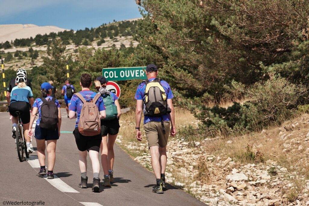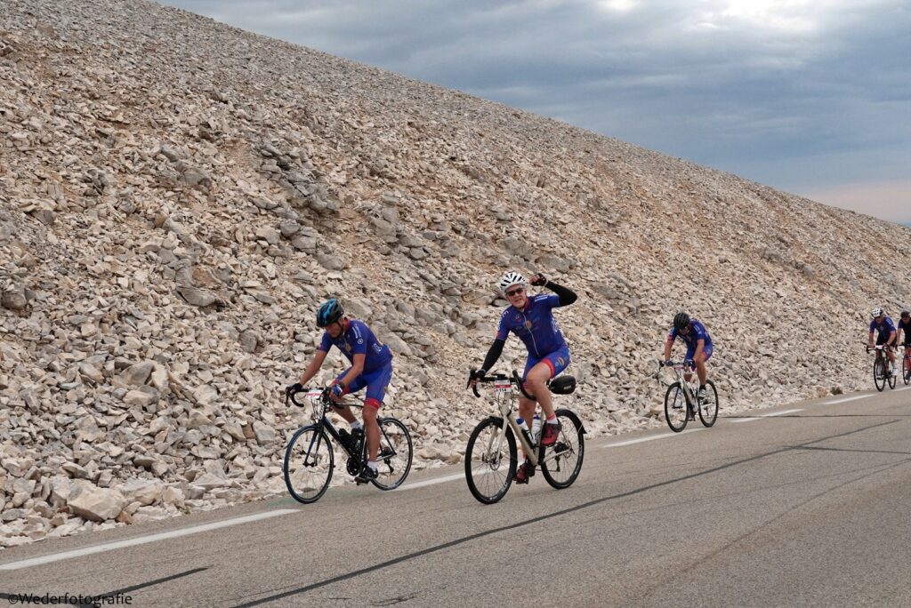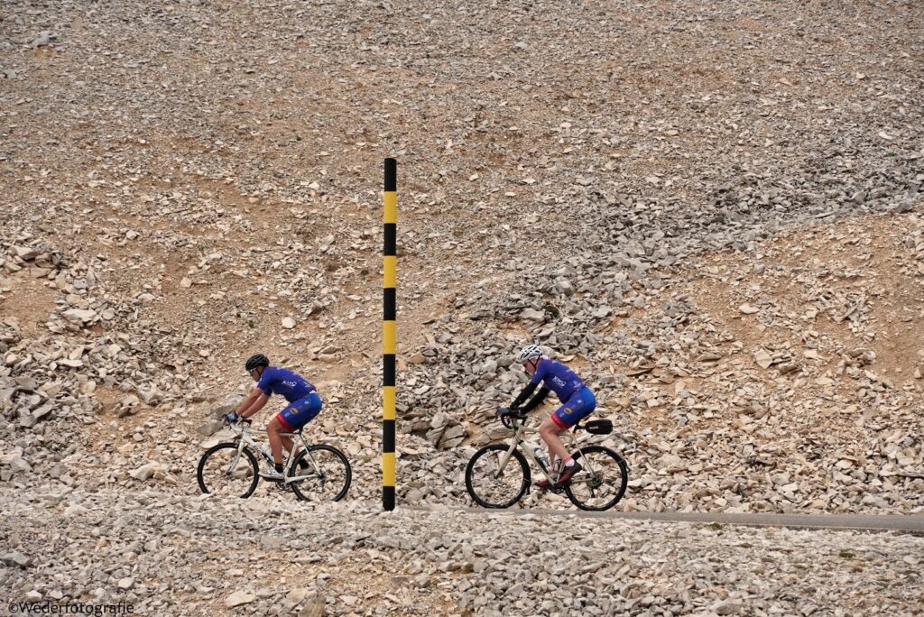Op 1 en 2 september 2022 ging Groot verzet tegen kanker tegen de Mont Ventoux op. De wandelaars gingen op 1 september en de fietsers op 2 september. Ik heb als vrijwilligers alle wandelaars en fietsers onderweg gefotografeerd, 479 foto’s van wandelaars en 410 van fietsers. Ik had een mooie plek gevonden met uitzicht op het dorp waar de route begon. En eentje halverwege de kale helling.